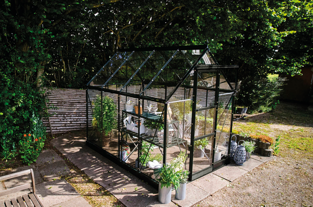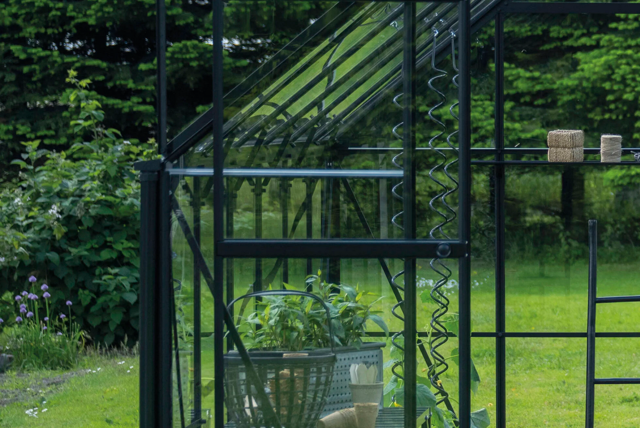 HALLS szklarnia ogrodowa ICON 6 (4,9 m2; 1,93 x 2,55 m) czarna, szkło hartowane + baza.