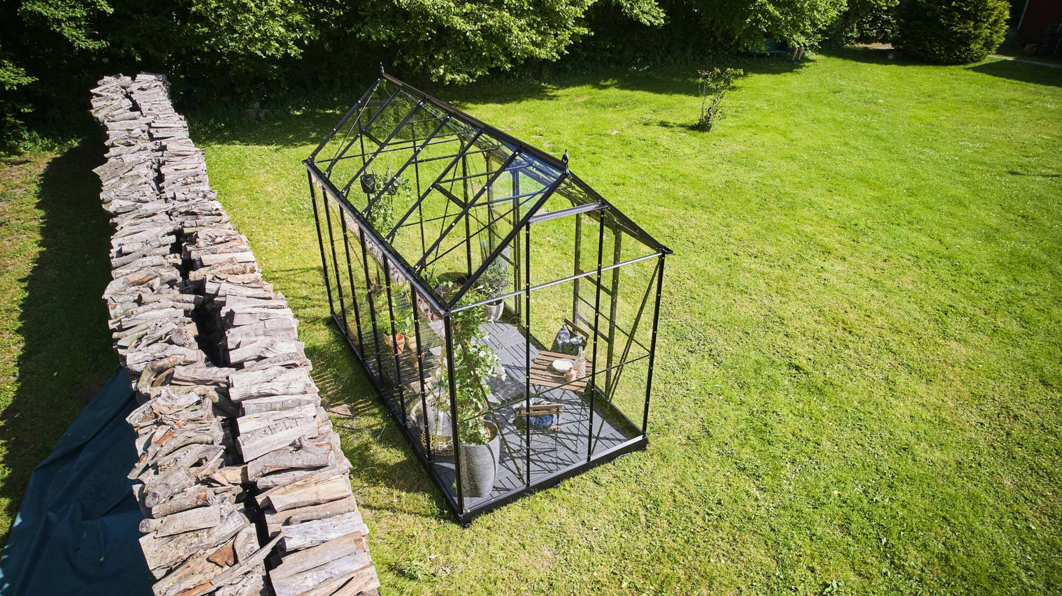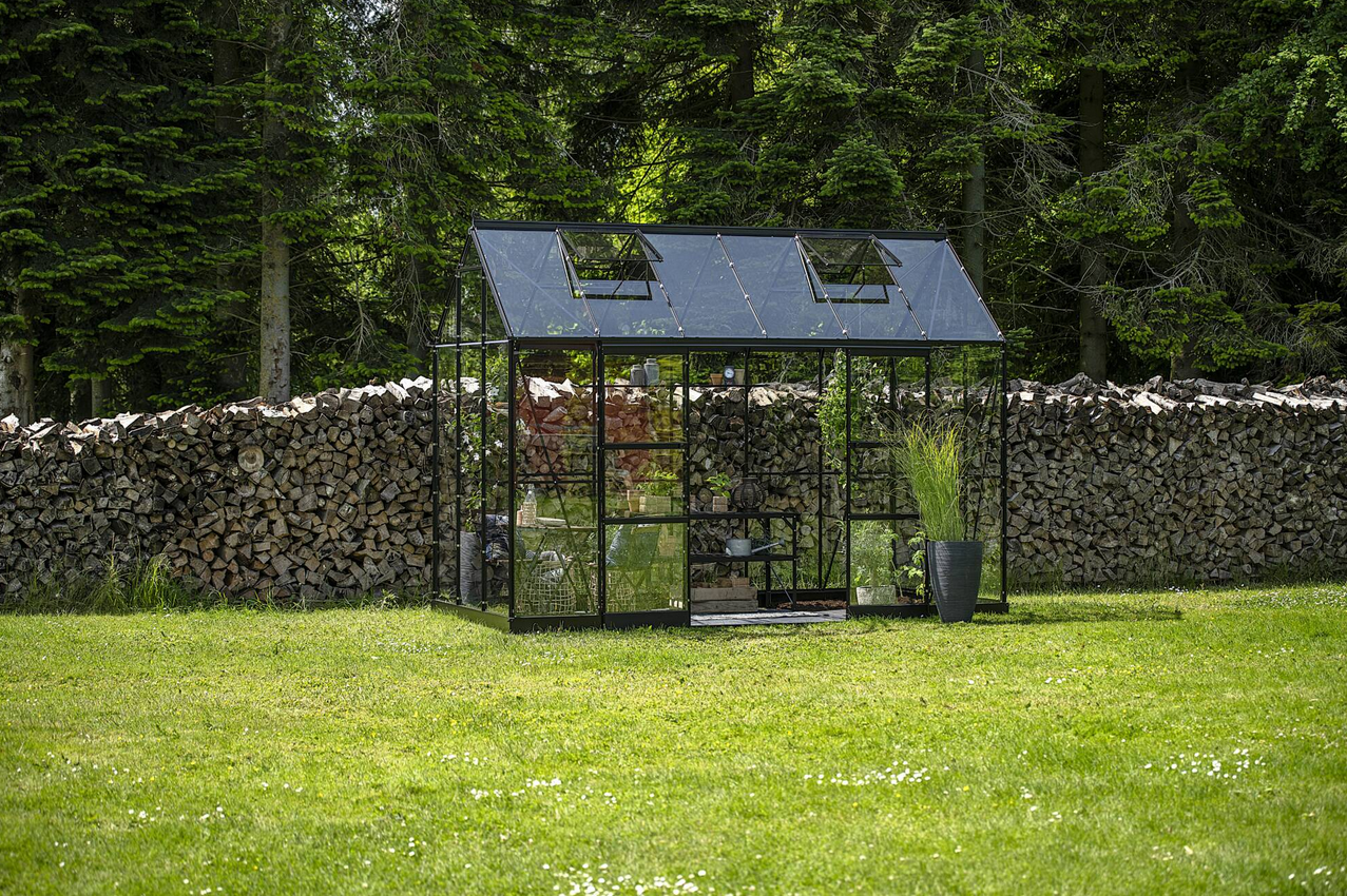 HALLS szklarnia ogrodowa ICON PLANTHOUSE 6 (7,3 m2; 1,93 x 3,79 m) czarna, szkło hartowane + baza.