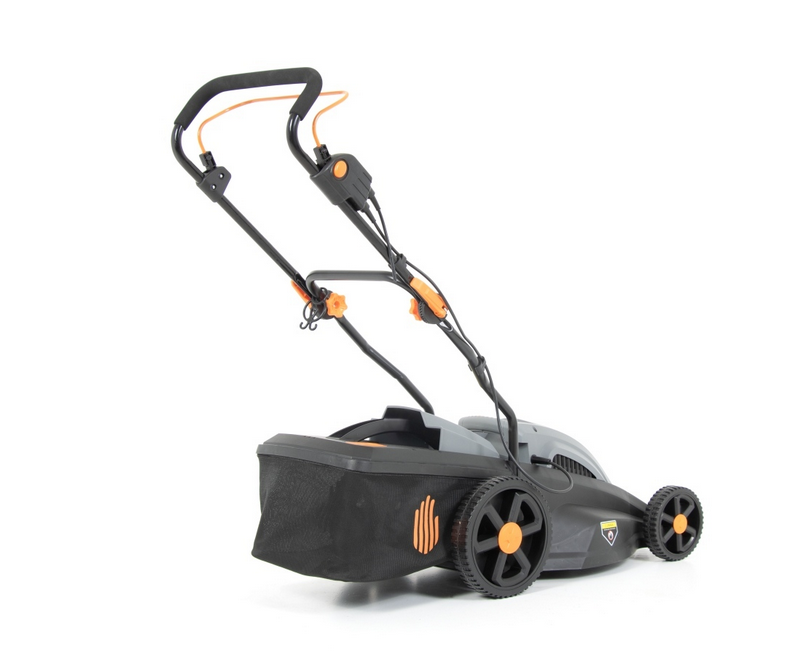 Duże koła o średnicy 17/25 cm ułatwiają manewrowanie, a regulowana wysokość uchwytu zapewnia wygodę pracy osobom o różnym wzroście. Ergonomiczny miękki uchwyt zmniejsza zmęczenie rąk i poprawia kontrolę nad kosiarką.