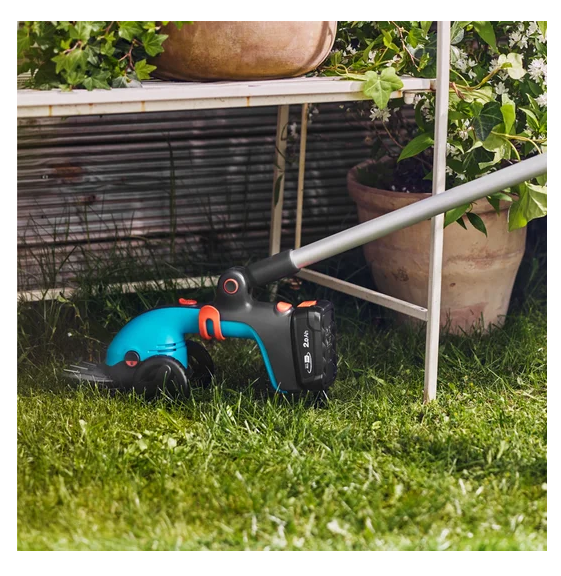 - Zasilanie akumulatorowe: Akumulatorowych nożyc do cięcia krzewów i brzegów trawnika można używać w ogrodzie dowolnej wielkości.