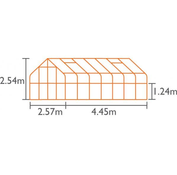 Szklarnia w całości wykonana z aluminium i szkła HARTOWANEGO o grubości 3mm. Wyoblone szyby wykonane są z płyt akrylowych. Zarówno w ścianie bocznej jak i dachu, na jedno przęsło jest jedna tafla szyby hartowanej.